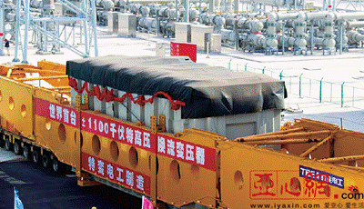 這臺特高壓換流變壓器于一個月前在新疆昌吉特變電工±1100kV特高壓生產基地試制成功,歷時一周抵達這里。